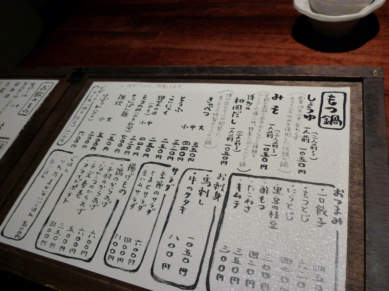 頼んだ料理は「もつ鍋(しょうゆ)」です。味はあっさり上品味なので、観光客で「もつ鍋」を食べた経験がない人でも、とっっき易い味だったと思います。もちろん美味しかったですよ!値段も意外にリーズナブルでした。- 旅行時期