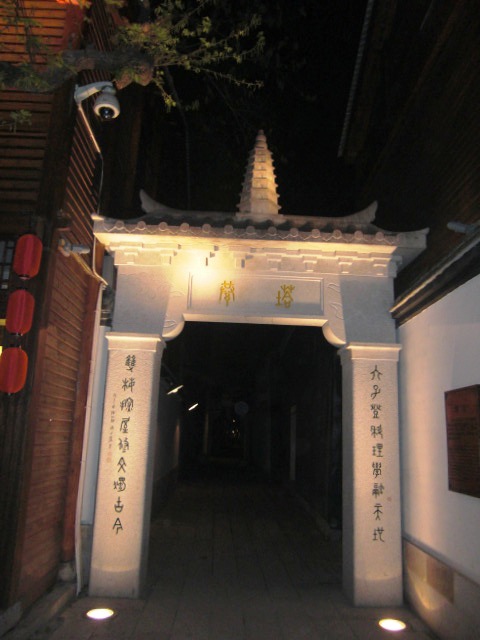 中軸の南後街は古い町並みを模して新しく作られた商店街で、そこから西に伸びる三坊と、東に広がる七巷への路地口にはそれぞれ牌坊が建てられています。その牌坊を入った路地の方に、本当に価値のある歴史文化財がありますので、ご注意ください。