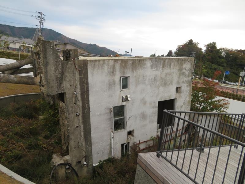 3年前の2017年12月に訪れた時にはコンクリート造りの建物が横倒しになったままでしたが、今回(2020年11月)訪れた時は周囲が津波対策でかさ上げされた中でそのままの姿で震災遺構として残されていました。