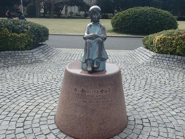 野口雨情作詞の物悲しい童謡「赤い靴」をモチーフにした銅像です。
