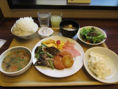 無料朝食は郷土料理のけの汁などもあってまずまずの内容。(無料とはいっても宿泊料に込みと考えた方がいいのでしょうが)