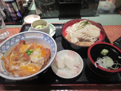 稲庭うどんと鹿角ポークのミニカツ丼のセットで、稲庭うどんは温かいの、冷たいのを選ぶことができます。