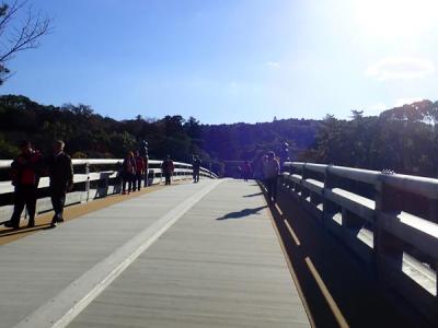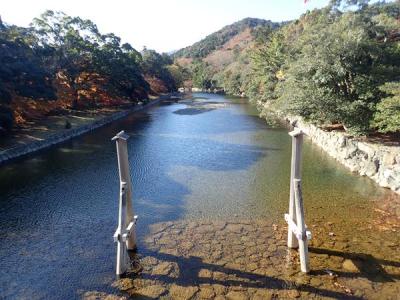 大鳥居をくぐって五十鈴川にかかる宇治橋を渡って内宮へ向かいます。