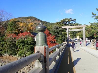 五十鈴川をまたぐ宇治橋を渡って広い神域を歩きました。