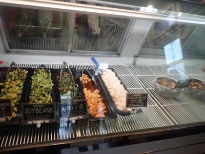 日本のコンビニほどの品ぞろえはなく、夜には閉店してしまうので訪れた夕方には弁当系の食べ物は少なくなっていましたが、そんな中で巻きずしを手に入れて夜食用にしました。