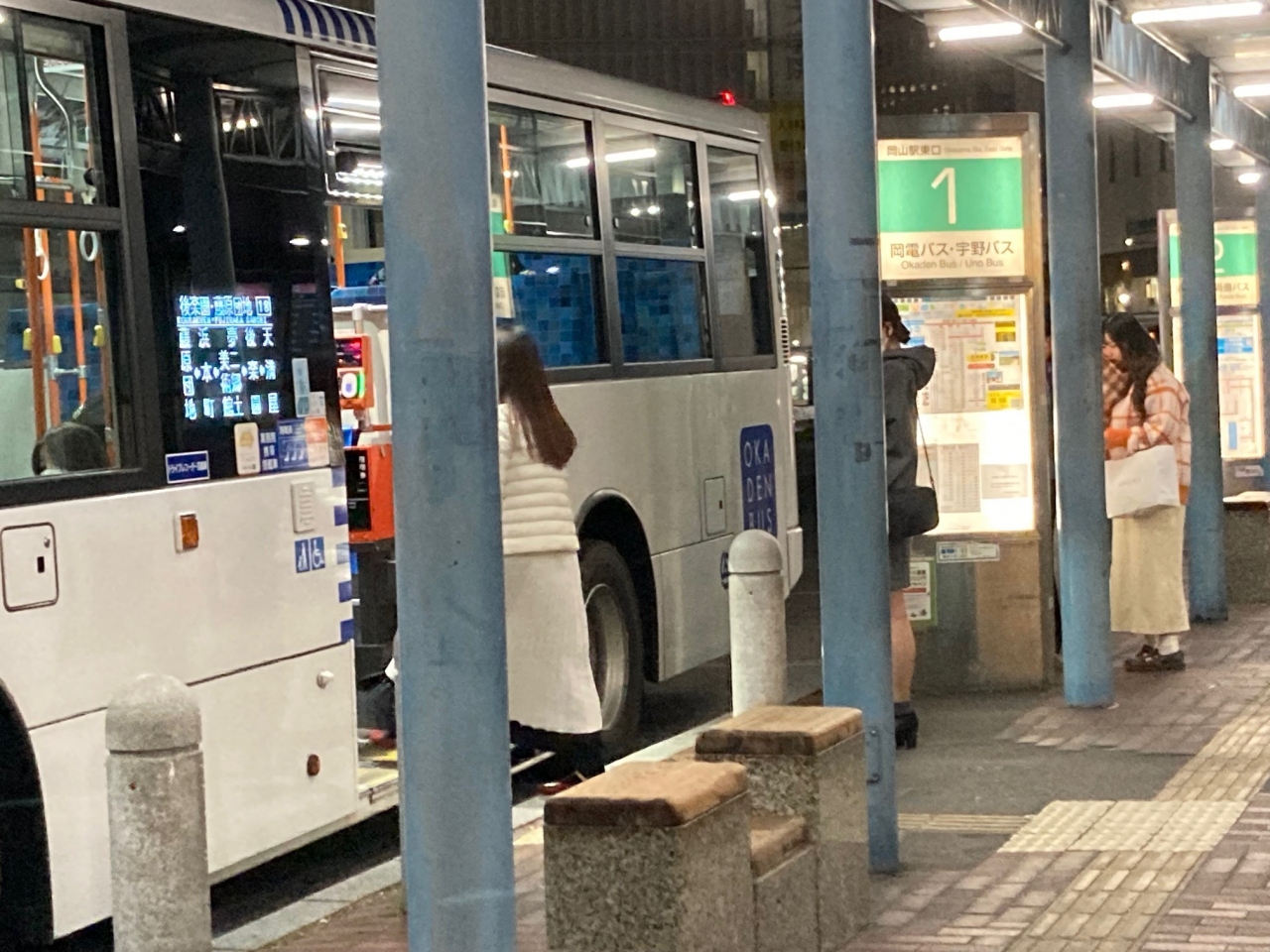 岡山市内観光の移動に利用しました。バス会社は数社あるようですが案内はわかりやすいです。岡電バスが多いようです。東口で路線バスを利用し、空港へは西口からの別のバスに乗りました。岡山市内を広く走っているので乗車する機会があるかもしれません。