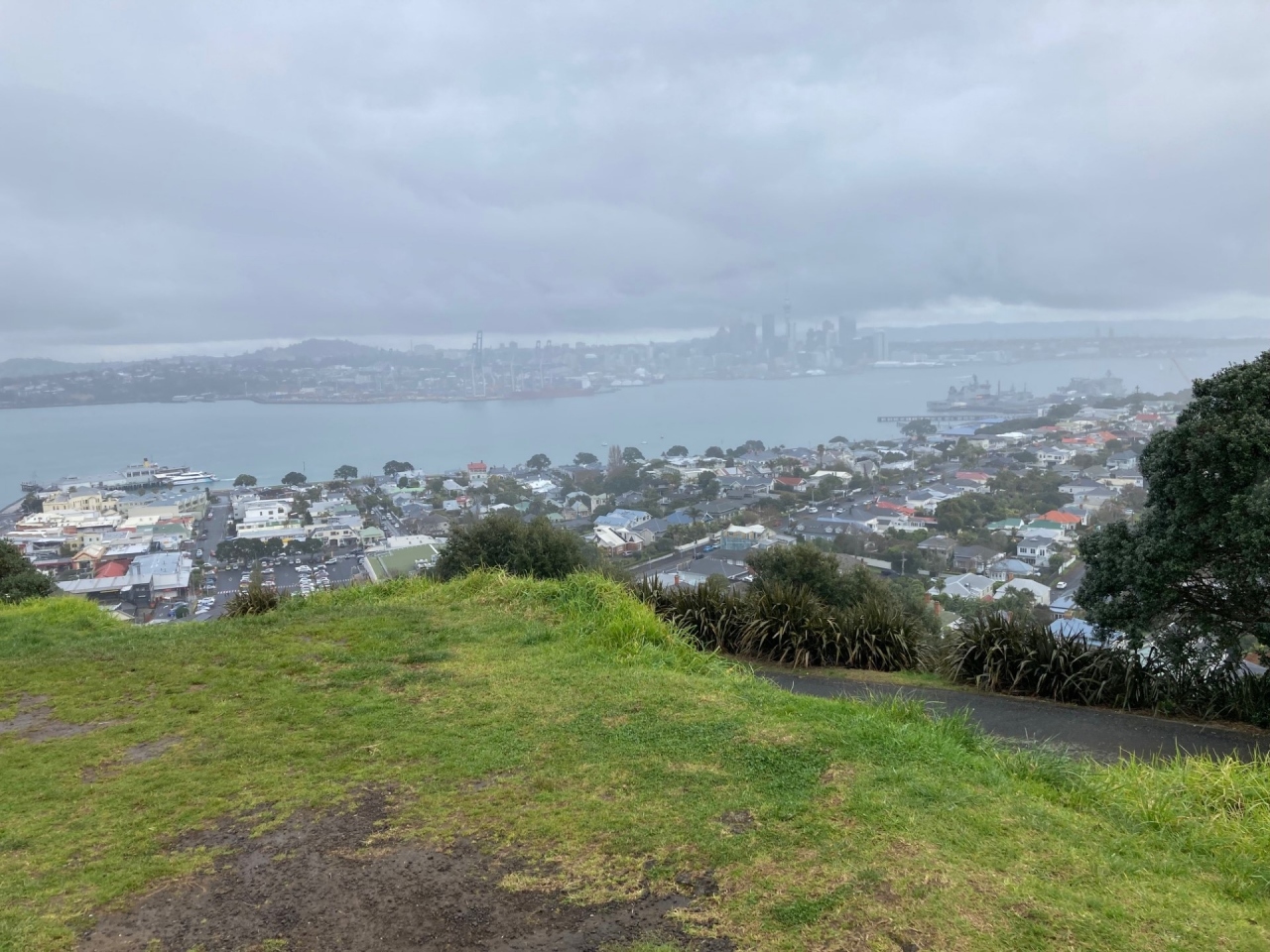 ダウンタウンからデボンポートへ移動しマウント・ビクトリアを観光しました。登るのは大変ではありませんが、雨が降っていたので一部滑りそうになるところもありました。ダウンタウンのビル群を望むことができます。雨が降ったりやんだりしました。