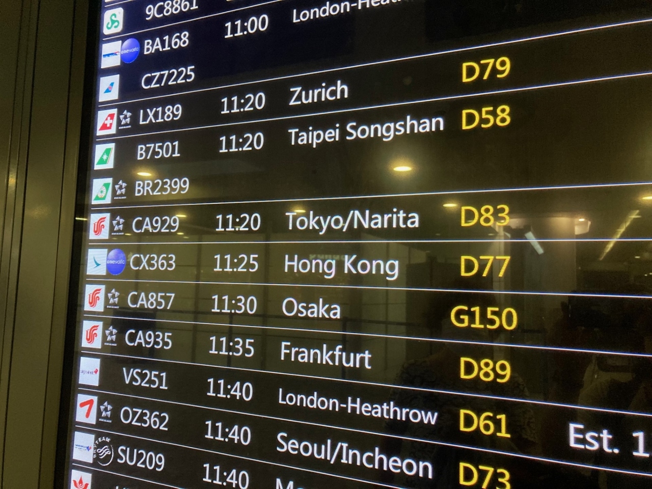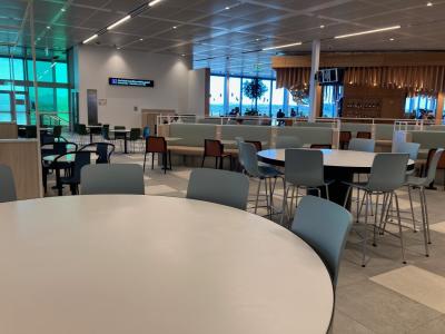 スターアライアンスゴールドのためエアーチャイナのエコノミーの乗り継ぎでしたが利用しました。北京のラウンジと比較して広く、席もたくさんあります。コロナ後で航空便は回復しつつありますが、ラウンジの席は空席が目立ちました。食事は時々補充されていました。