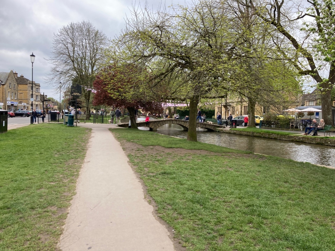 写真やガイドブックで見てコッツウォルズで是非とも訪問したかったのがこの村。イギリスの家族連れやアジアからの観光客が観光していました。カフェ、レストラン、土産物店がたくさんありました。スコーンと飲み物のセットなどを注文し外のベンチとテーブルで食べました。美しい町ですが、観光客だらけでした。宿泊して静かな早朝に散策するほうがよいかもしれません。