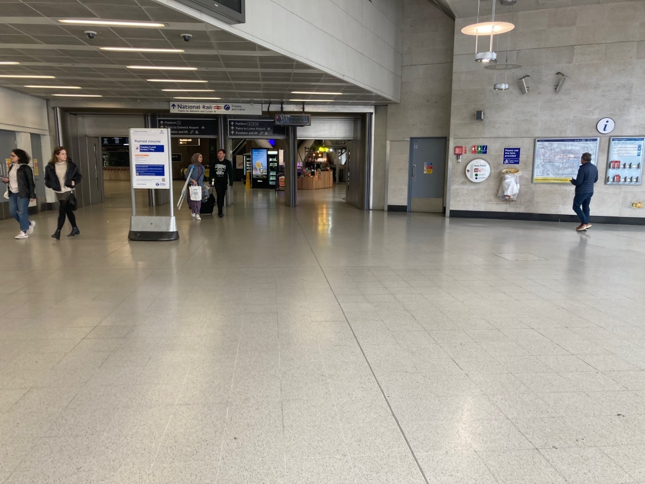 ロンドンのパディントン駅からこの駅まで地下鉄で移動しました。ここからまた鉄道でブライトンへ移動しました。乗り換え時に少し時間があったので外へ出たところ、ブラックフラーアーズ橋でしょうか、大きな橋がテムズ側にかかっていました。周辺はビルが並び大都市ロンドンを感じます。