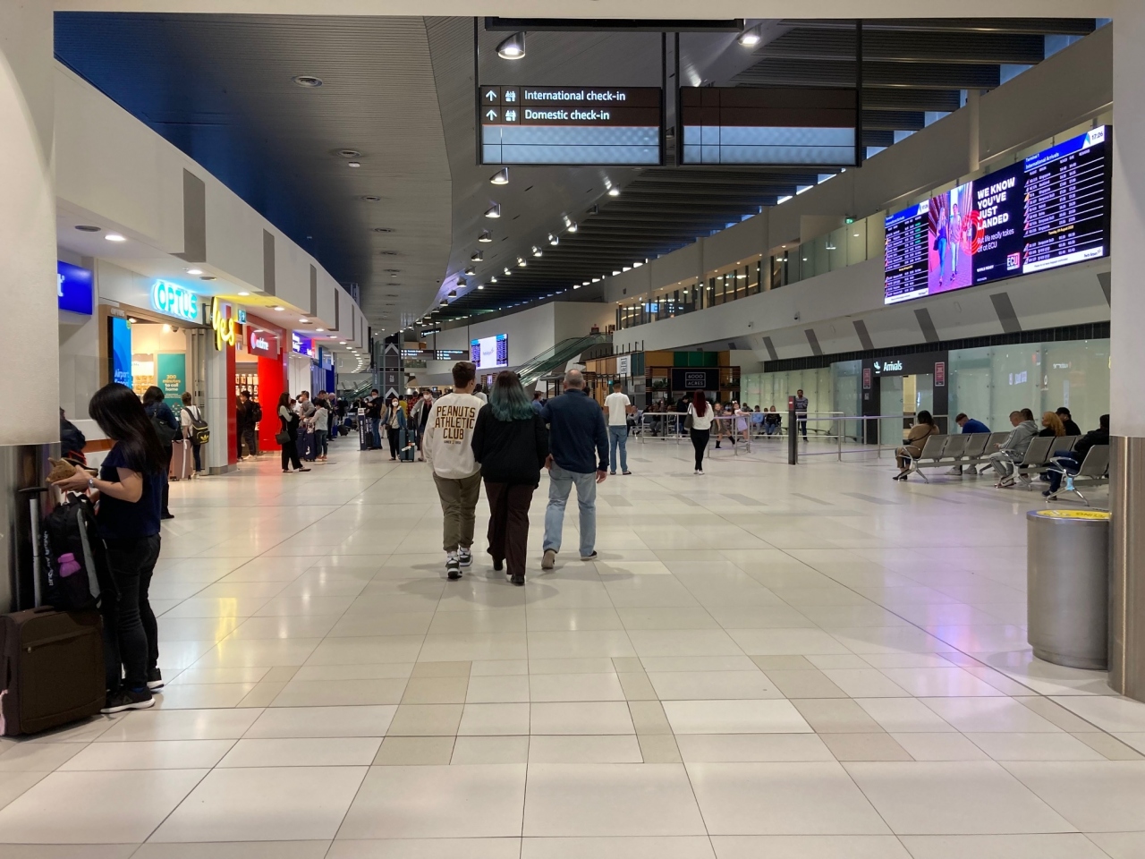シンガポール、ドーハ、成田といった空港を訪れた後にこの空港へ来た。自動化ゲートなどがなくセキュリティチェックも並び方が適当だった。カフェ、ファーストフード、土産物店などがいくつかあったが、乗り継ぎは少し退屈。