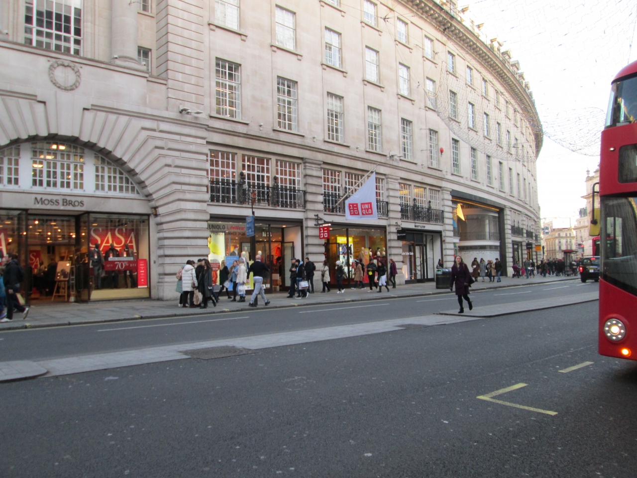 ロンドンの銀座といった感じの大きな通りです。日本にもある世界的ブランドの洋服、靴、カバン、食料品などのお店が並んでいます。通りが広く、全体的に清潔感があるので安心して観光できます。地下鉄を利用して訪れることができます。