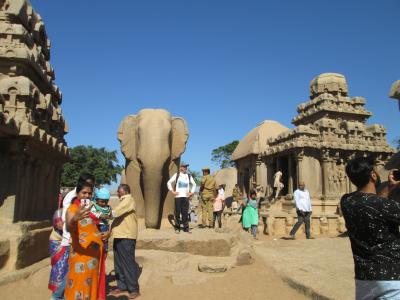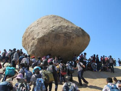 アルジュナの苦行のある同じ公園内にバターボールもあります。この石の下が坂になっているので、みんな滑り台のように滑って楽しんでいました。学生グループが1つまとまって見学したら、次の団体が来るといった具合でにぎわっています。