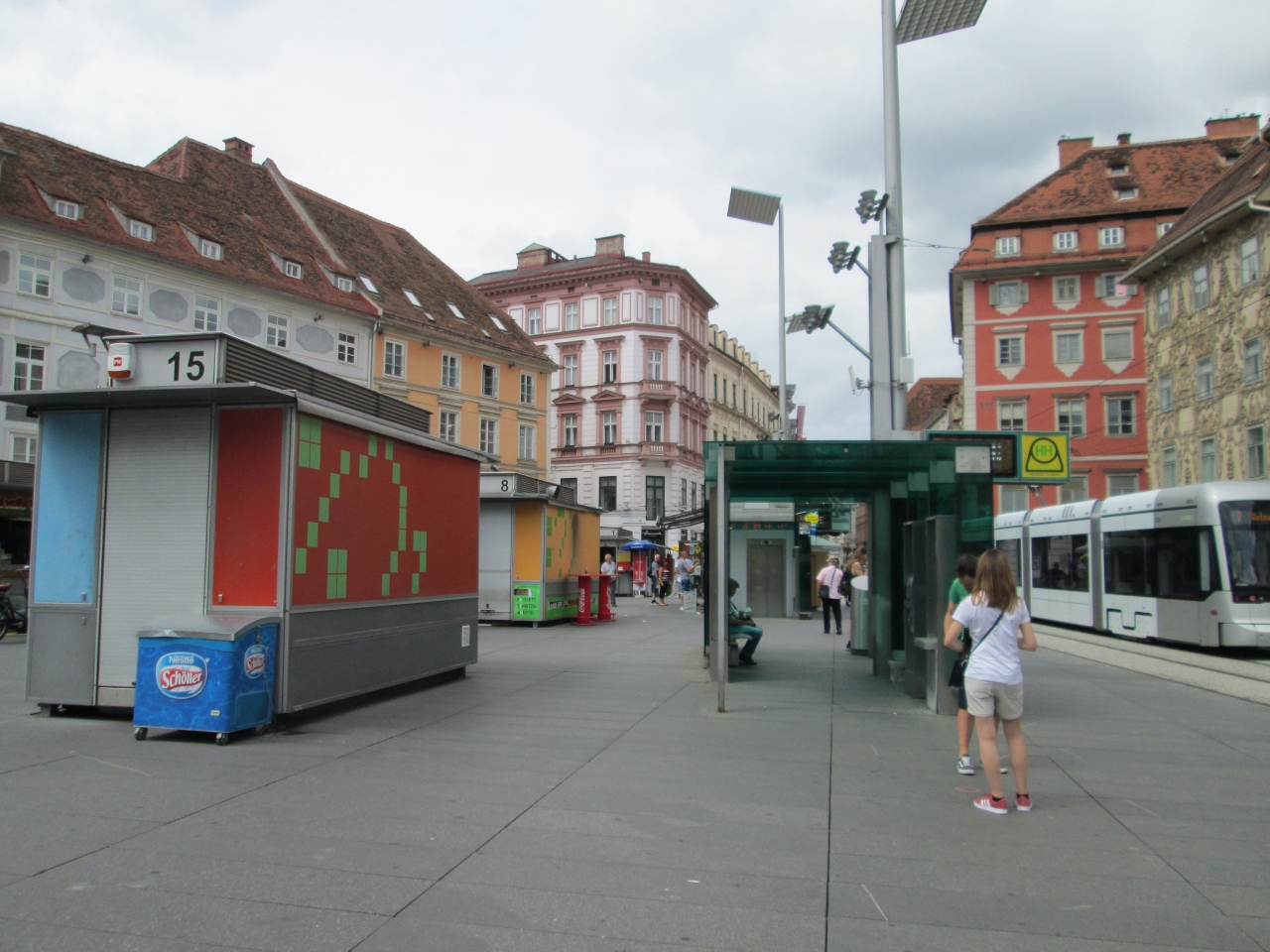 グラーツの旧市街観光時に立ち寄りました。グラーツはトラムを利用するとエッゲンブルク城側と旧市街の観光地とを簡単に行き来できます。鉄道駅と川をはさんでエッゲンブルク城と旧市街側が分かれています。どちらもみごたえがあるので両方行くことをすすめます。エッゲンブルク城から戻ってきたときにここでトラムを降り、周辺の建物を見てからトラムを乗り換えました。