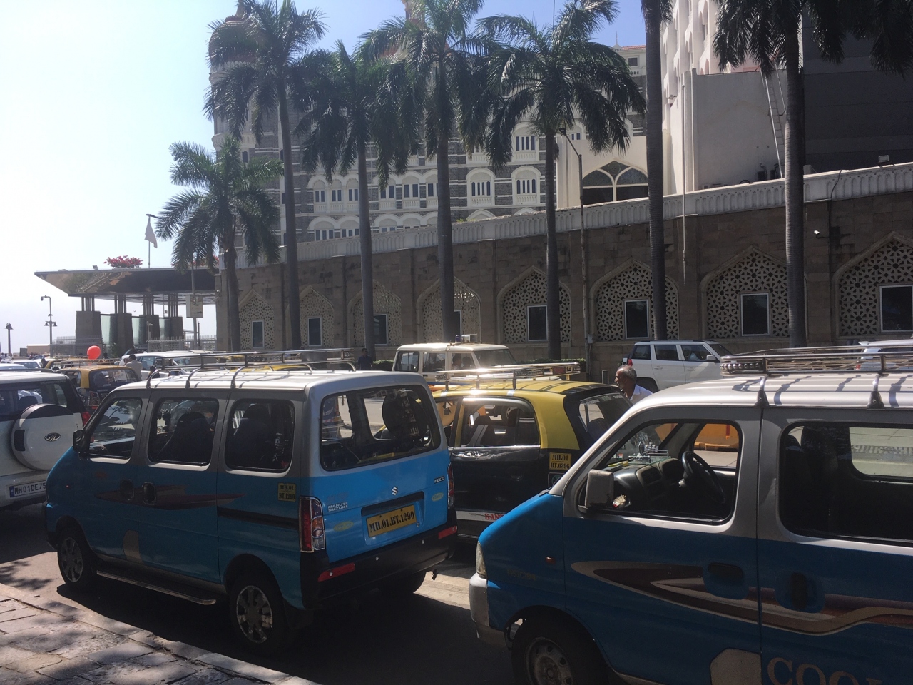 ムンバイでは他に選択肢があまりないので、空港からホテルまでは到着階のカウンターで申し込んでプリペイドタクシーに乗車しました。となりにはUberもありました。エアコン付きとエアコンなしの選択をさせられます。支払いをすませると車番が記入されたレシートをもってもう1階下の階にエスカレーターで行きます。外へでて該当の車を見つけ乗車します。空港からインド門近くまで1時間以上かかりました。他に数回乗りましたが、いつも道路は混んでいます。車は小さく古いものが多いです。気になる場合は高額ですがホテルから車を予約するとよいでしょう。