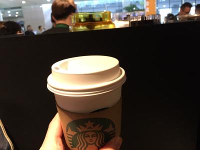 ティムホートンは空港内の到着ロビーのお店を以前に利用したことがありましたが、こちらは、チェックイン後の出発フロアにあるお店。小さめのフードコートのようになっているスペースの端のほうにありました。乗り継ぎなど時間が限られていても飛行機に乗る前に購入でき便利です。