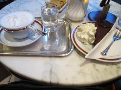 ウィーンは、ケーキがおいしい街ということで、本場のザッハトルテをホテルザッハで食べることにしました。ザッハトルテは、日本で売られているものよりもかなり甘いものでしたが、1つなら食べられるでしょう。シンプルな味でしたが、おいしいものでした。幸い混雑していない時間でゆっくりすることができました。スタッフのサービスも申し分のないものでした。