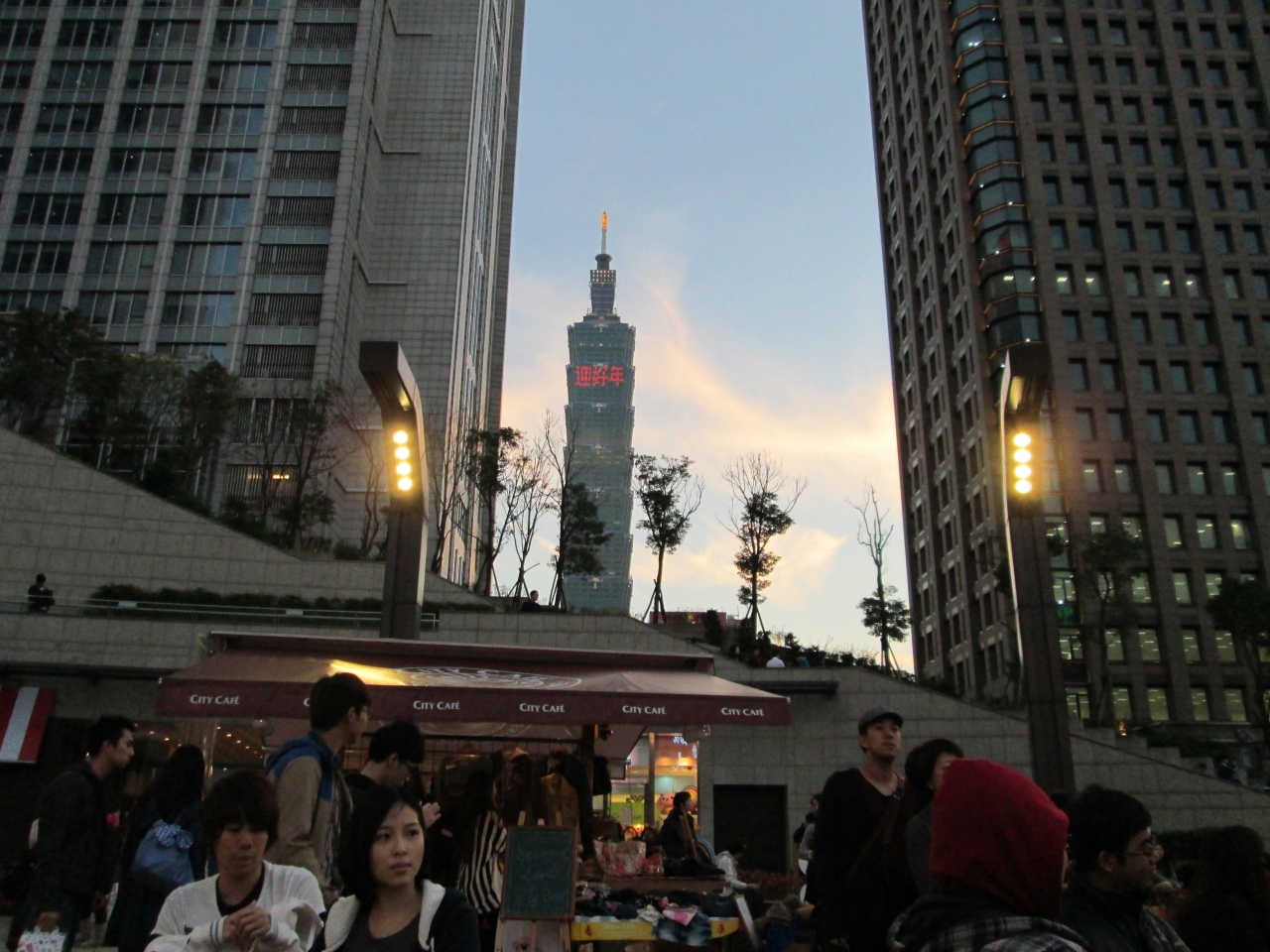 MRTの駅を降りてすぐ、101を見ることができます。実際に建物の中に入るには、10分程度歩きます。周辺はビジネス街か、非常に清潔に道も整備されています。一番上のほうには、レストランが何件か入っています。ガイドブックに掲載されていたレストランが満席だったため別のレストランに入りました。眺めを期待しましたが、週末で混んでいたため窓際の席ではなく、また、ビルの高さが高すぎるため、下の街は小さくしか見えず、眺めがよいというわけではありませんでした。話の種にはいいかもしれません。レストランの料理はコースできれいな盛り付けでしたが、印象に残る味ではありませんでした。