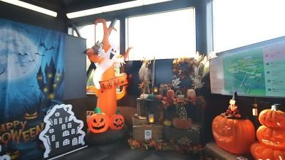 構内の一角にハロウィーンの飾り物が目にとまる。