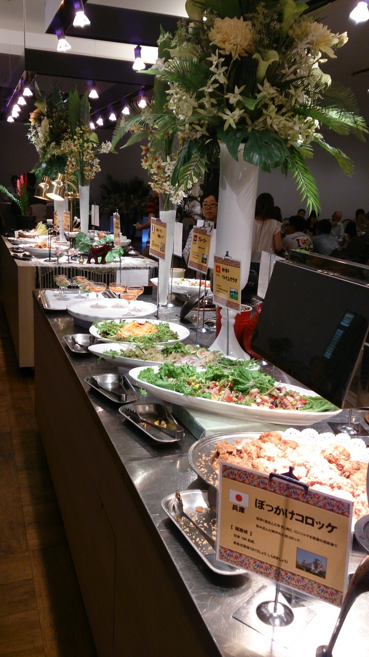 食事は朝夕共にバイキングでしたが品数が多く多国籍料理になっていました。時折マグロの解体ショーも行っていたりして子供も楽しめると思います。