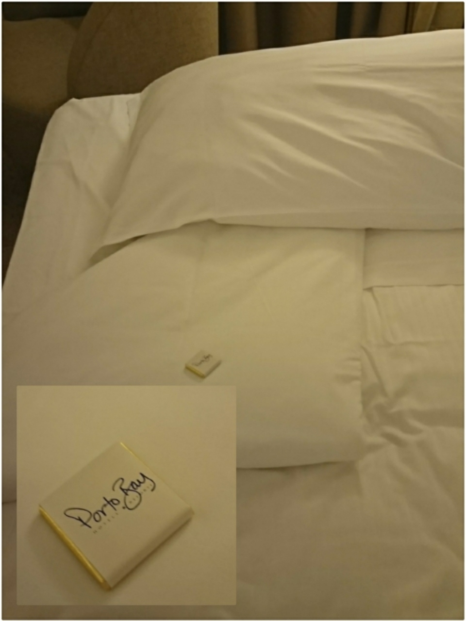ソファーもあって、広いお部屋で大満足でした。またウェルカムドリンク(ポートワインの小瓶)とナタも出してくれました。
