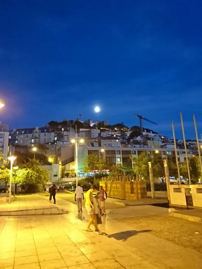 広場からの満月とサン・ジョルジェ城がとてもキレイに観ることができました。