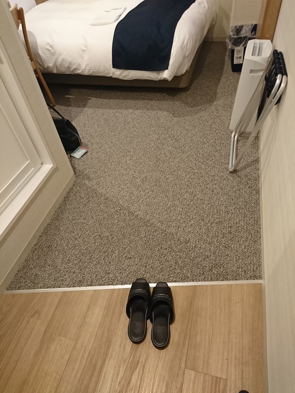 お部屋に入るとスリッパがセットされていて、「ここからは靴を脱いで」と書いてありました。