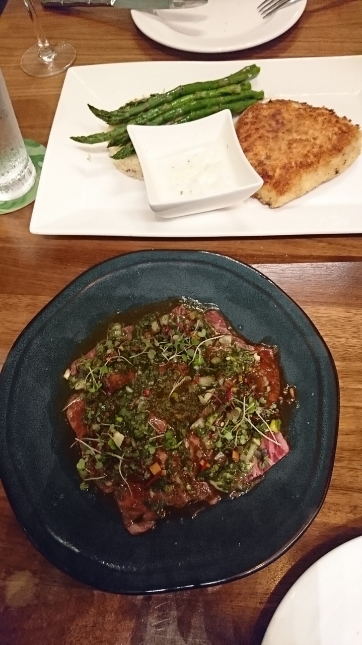 オススメされたお魚のグリル、美味しかったです。ソースにパクチーと書いてあったので、ソースを変えてほしいとお願いしたところ、ガーリックソースに変更してサーブしてくれました。