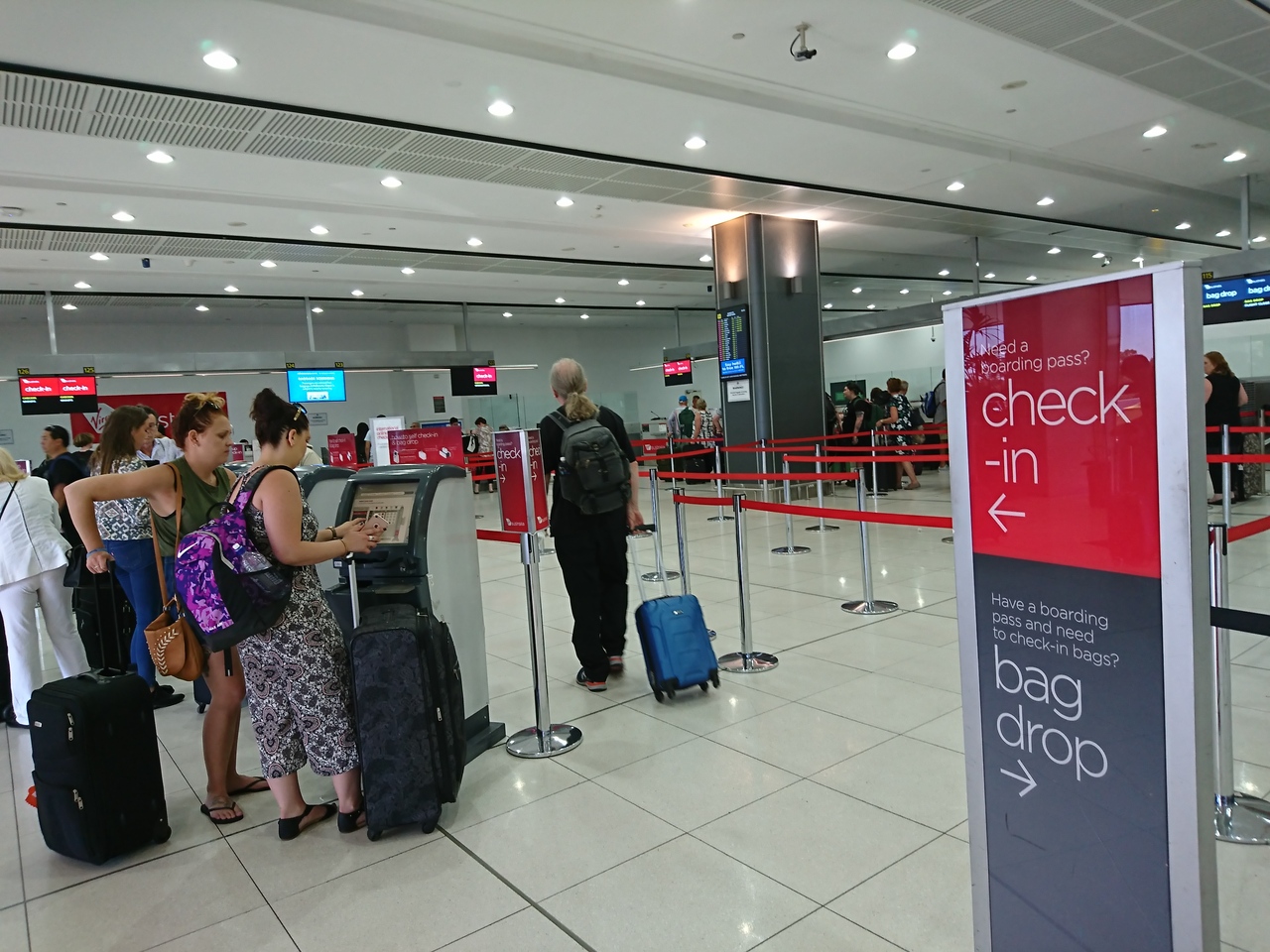Kioskで航空券、預け用のタグを発券し、チェックインカウンターへ。