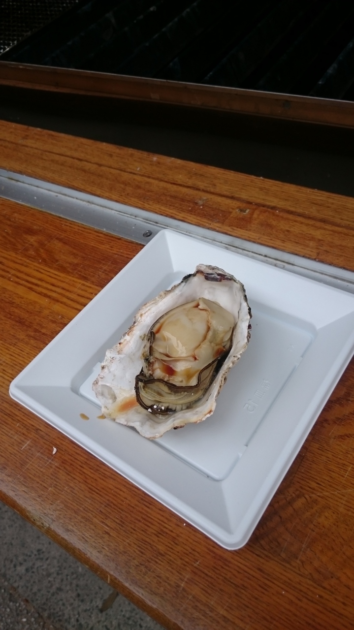 テーブルは室内と室外、両方ありますが、もちろん外のテーブルに座りました。