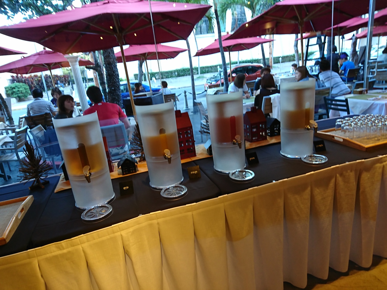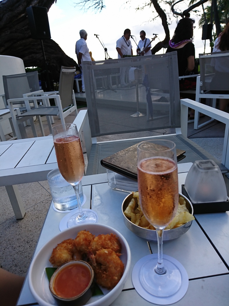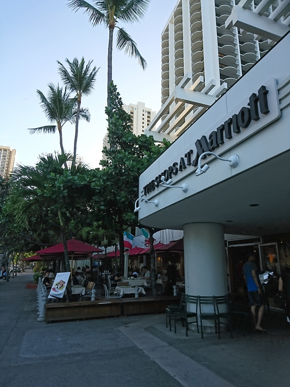 ワイキキの街並みを見ながらの食事で、風もそよぎ、開放的な感じでした。