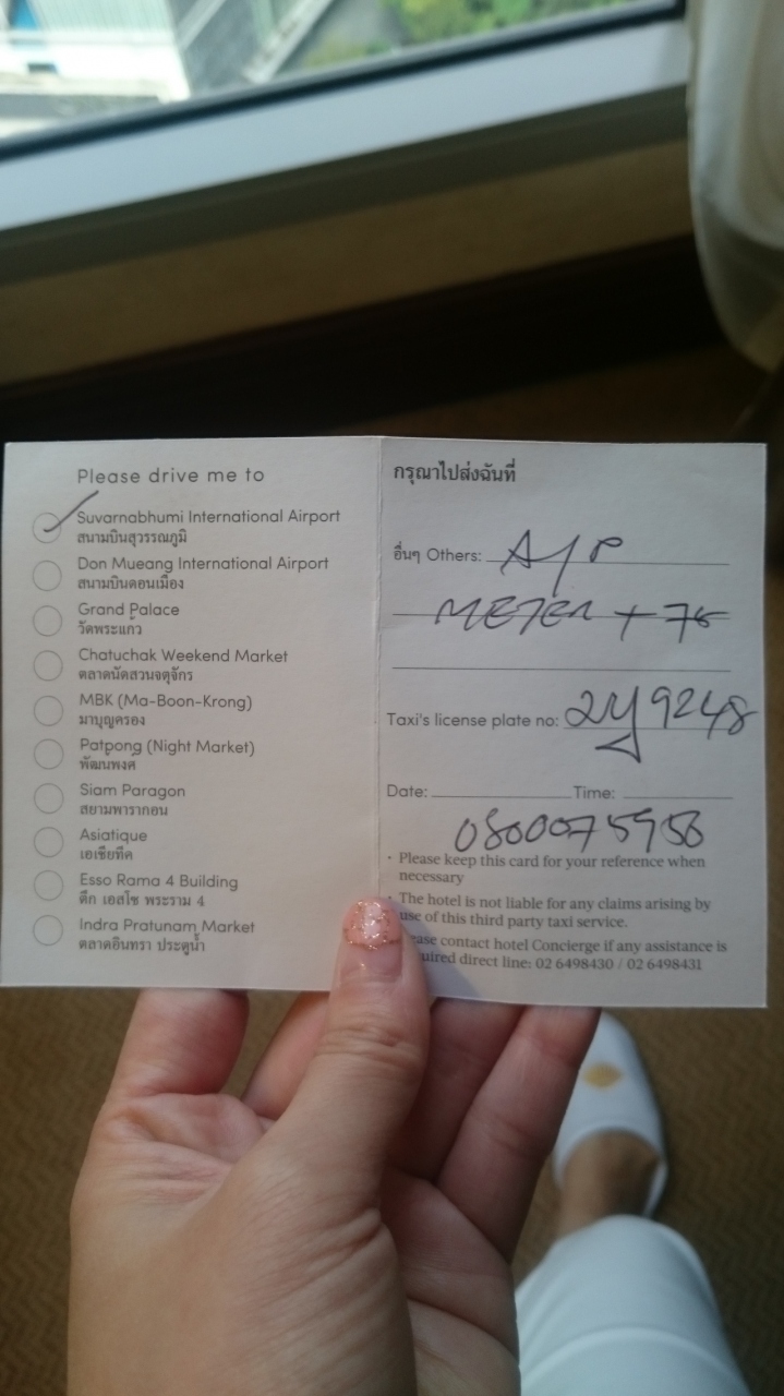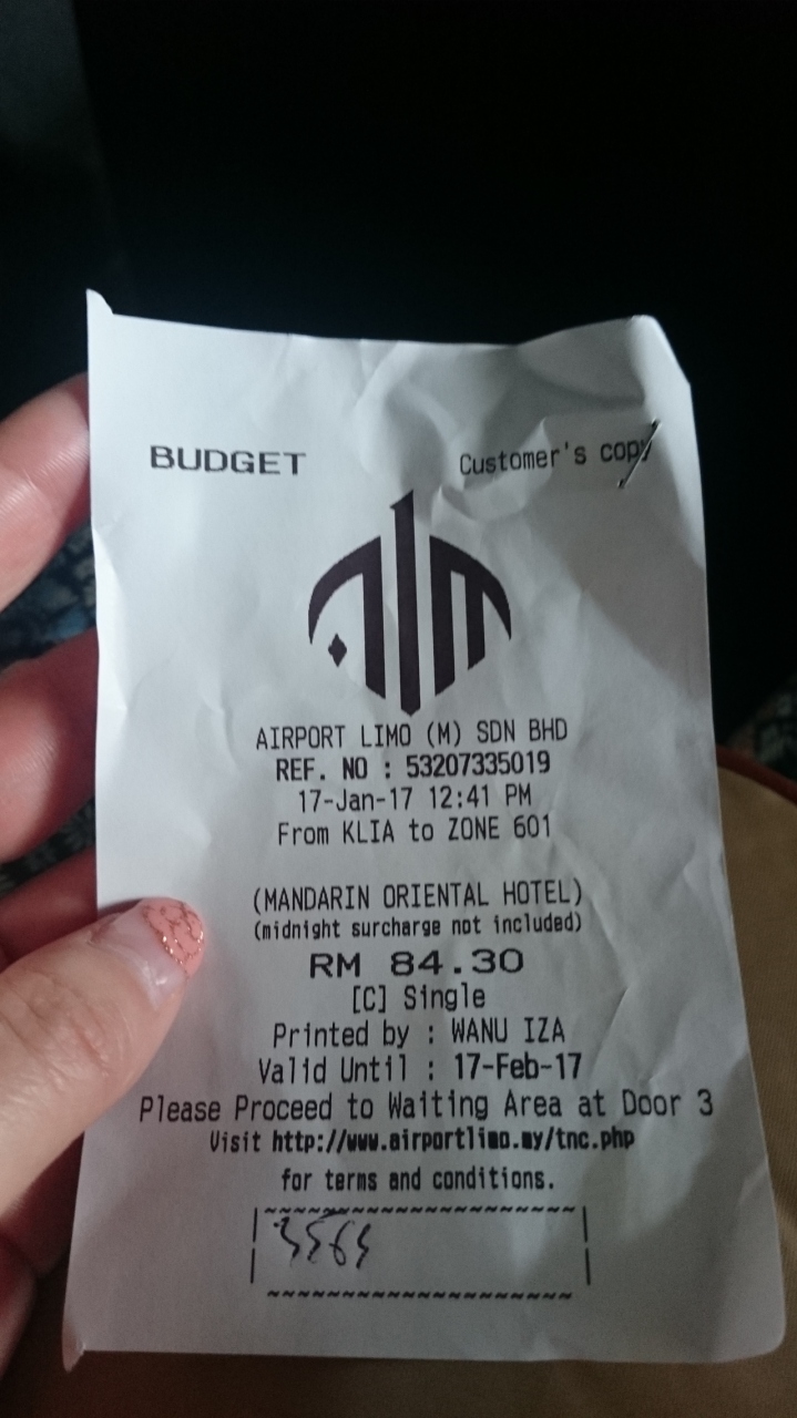 プレミア、バジェット、ファミリータイプと利用する車種、人数、行き先を告げると金額が提示されます。「1person,●●hotel,Budget」(これでOKです。) 前精算(現金、クレジット可)し、指定された出口に行くとリムジンサービスの乗車口があります。