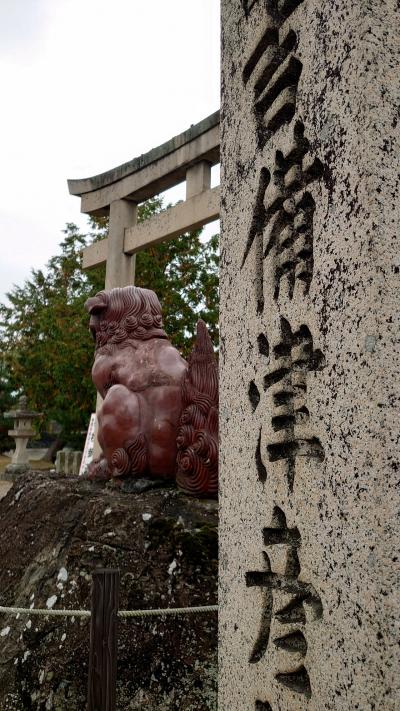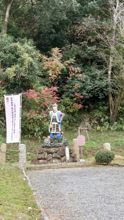 大吉備津彦命は、桃太郎のモデルだそうです。駐車場の奥にも桃太郎像がありました。