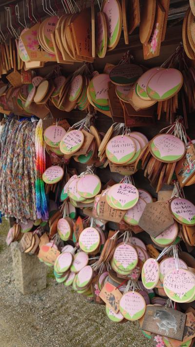 絵馬、お守り、御朱印帳、おみくじ、桃に溢れていました。