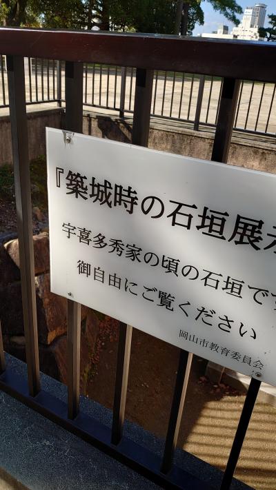 瀬戸内海の犬島から運ばれた石で組まれているそうです。入口から程なくの所に築城時の石垣が残っていて、展示されていました。