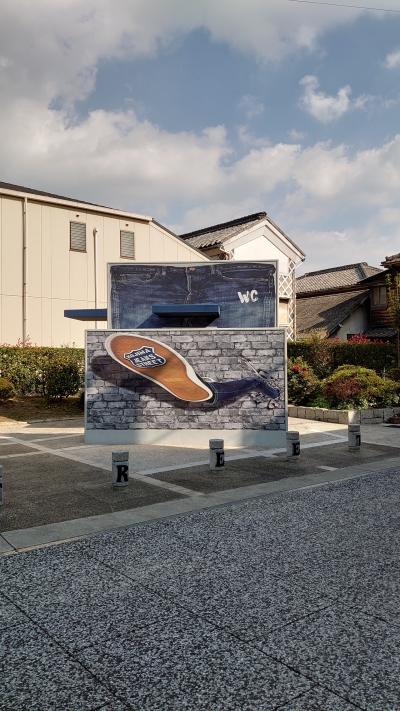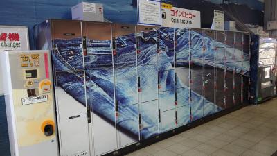 駅は閑散としていますが、構内や周辺はジーンズ推しのアートになっていました。