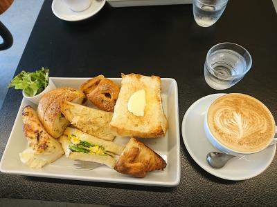 焼きたての温かいたくさんパンとドリンク、お値打ちです。