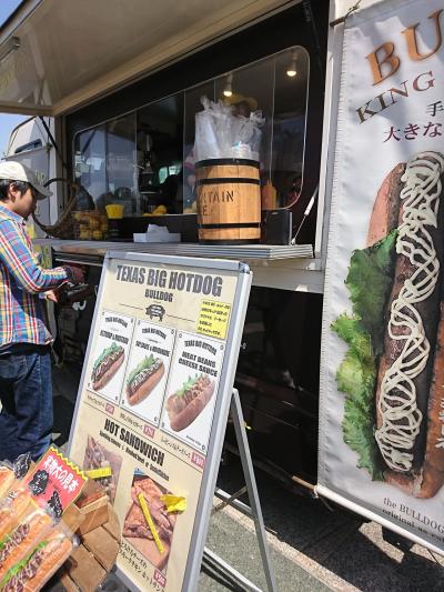 数台のキッチンカーや屋台があり、ベンチもたくさんあって、混み合いもなく座れました。