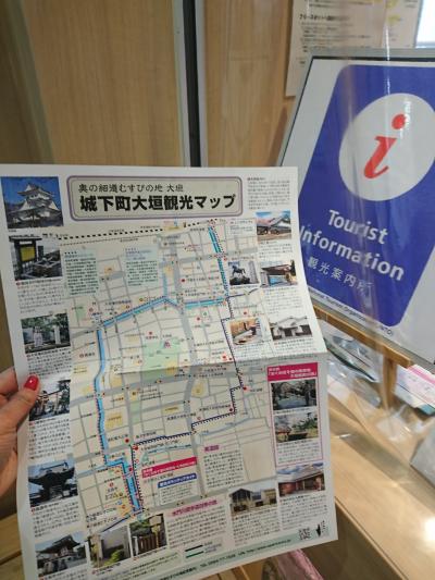 大垣観光マップをいただいて、みどころや歩いての観光の所要時間など教えていただきました。