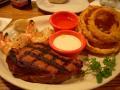 私はサーロイン&シュリンプでオニオンリングを注文。スープとパンがついてきます。