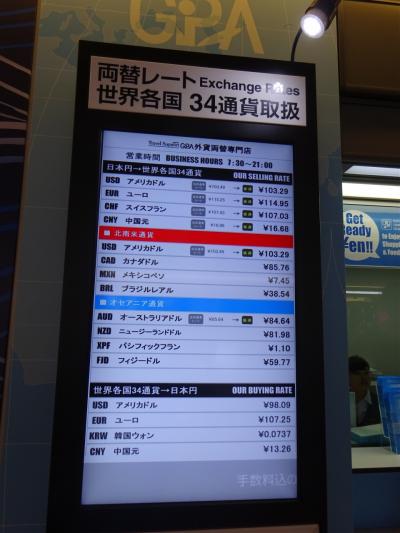 成田で両替。アジア以外の国は久しぶりすぎて現金がいくら必要なのかピンと...