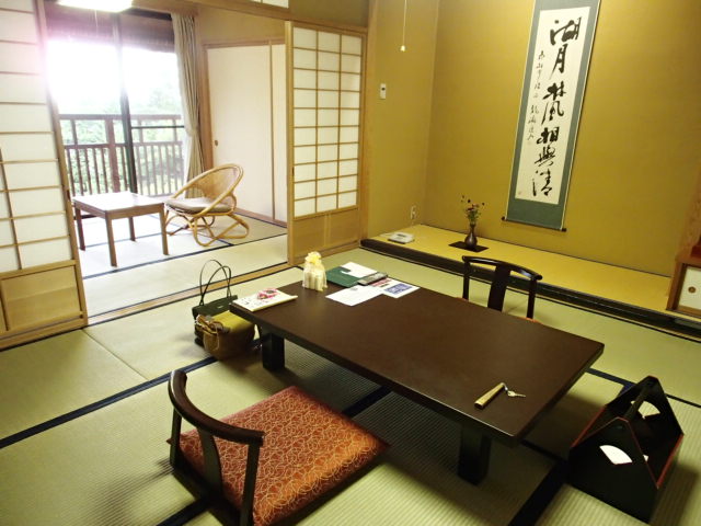 夕食あとには部屋の檜風呂に入ってみました。檜の香りに包まれ、窓の外はちいさなお庭がみえます。部屋に小さなお庭がついてるのです。