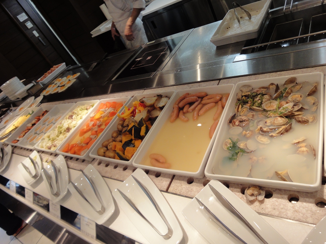 夕食は広い個室ですが、朝食はバイキング。バイキング会場がなんとなく