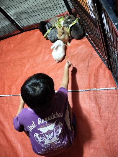 それよりもレゴランドの前の広場で動物に触れたり、魚を取ったりする出店が...