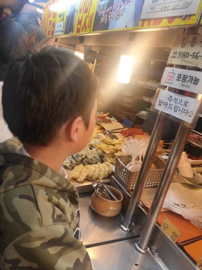 到着はもう夜なので、チャガルチ駅の屋台街へ。注文簡単とガイドブックには...