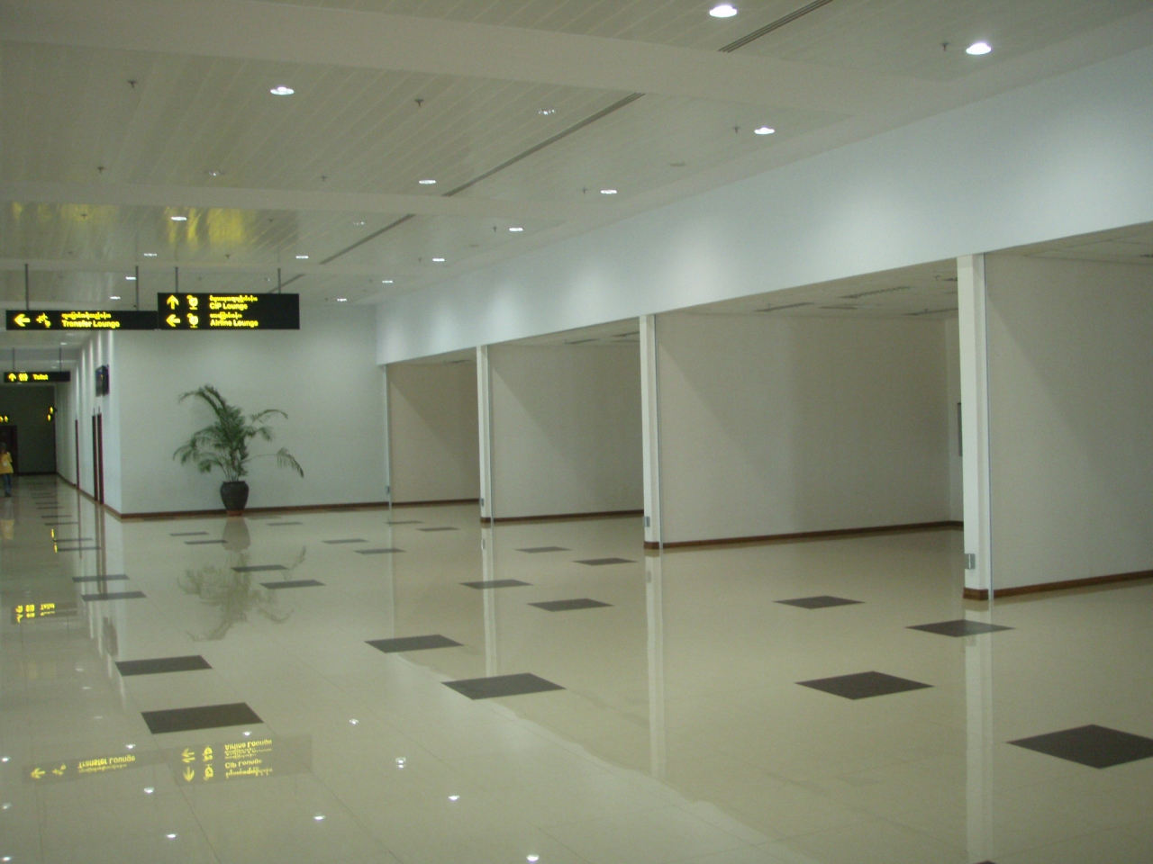 ヤンゴン国際空港は、今年6月に新しく生まれかわりましたが、出国手続き後には、免税店もカフェもレストランも何もありませんので注意が必要です。(2007年11月時点)「SHOP&RESTAURANT→」という看板や出店スペースはあるのですが、未だにオープンしていません。ちなみにビジネスクラスラウンジはあって、軽食やドリンクもあります。なお、到着後のバッゲージエリアには小さな免税店がありました。