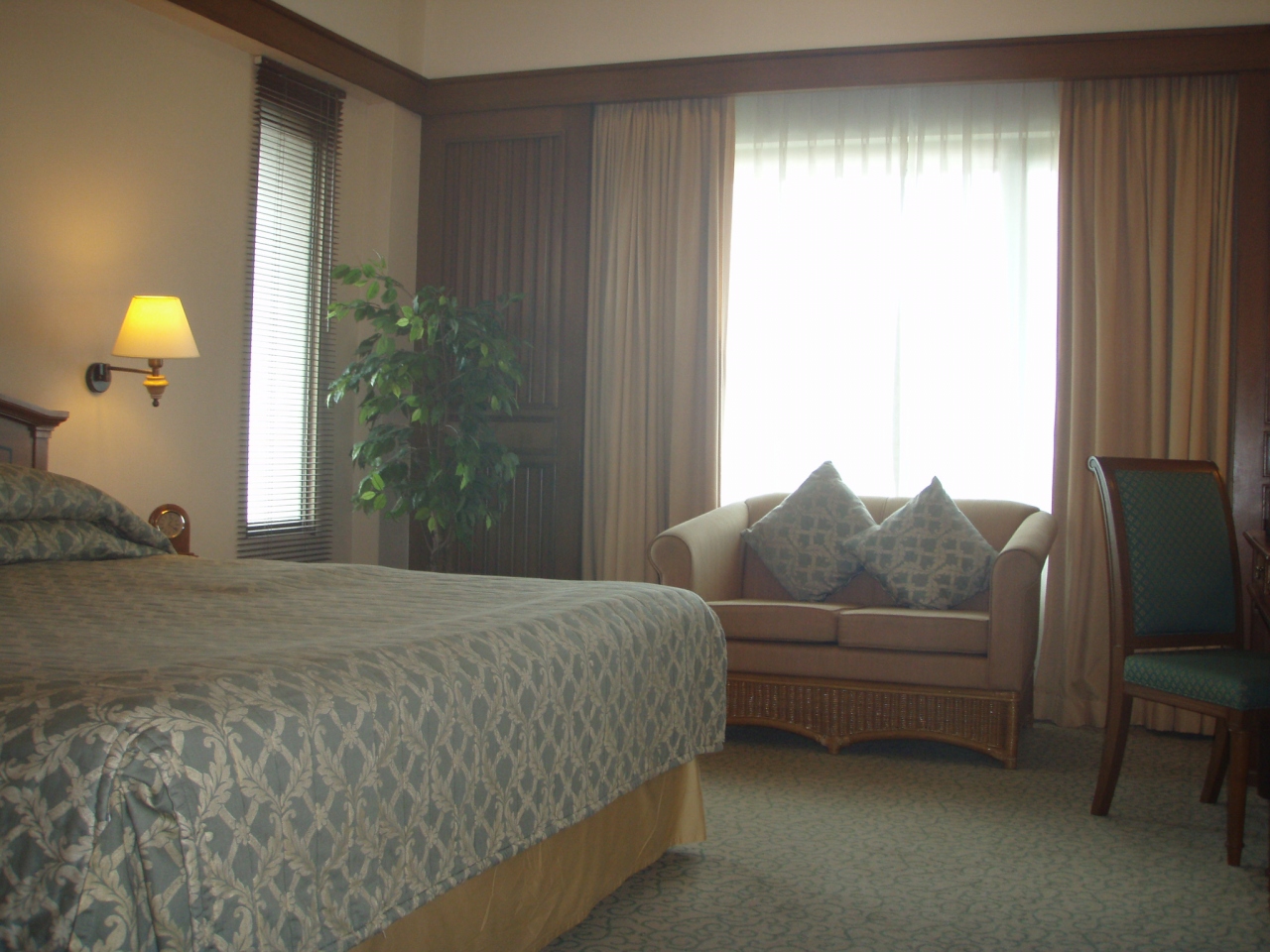今回は一番安いスーペリア(7~16階)での予約でしたが26階にアップグレードしてくれました。客室はブラウン系のインテリアでまとめられ落ち着いた雰囲気。31平米ということですがそれほど狭く感じなかった。やや家具類は古さを感じますが、よく手入れされています。ただテレビがブラウン管なのがマイナス。今回は観覧車ビューをリクエストしたので、きれいな夜景も楽しめました。無料の緑茶はあるのですがコーヒー&紅茶がないのが残念。(有料ならあり)