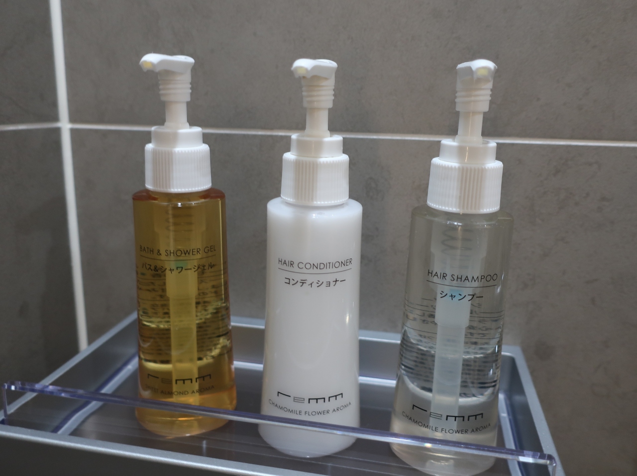 さらにチープなのはバスルーム。こんなに狭いお風呂は久々!アメニティも「クリアデュー」という無名の中国製。シャンプー、コンディショナー、ボディソープ、ボディークリームなど。まぁ香りは悪くないですが・・・。ただコンディショナーは、前の客が使用したものをそのままにしたのか3分の2しか入っていなかった。