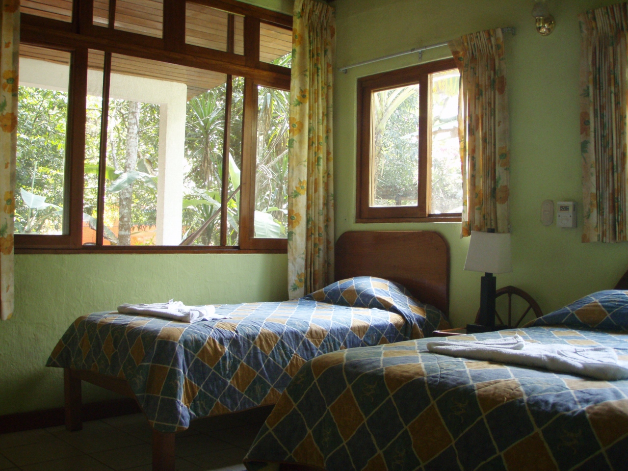 パナハッチェルのメインストリート、サンタンデール通りに面したホテル。広い敷地内にはプールを囲むようにコテージが並んでいる。同料金でも客室は数種類あるので見せてもらった方がいい。はじめ通された部屋は狭く暗かったので、変更して欲しいというと広く明るい部屋に替えてもらえた。客室はテラコッタの床にブラウン系のインテリアでまとめられているが古い!クローゼットには古い針金ハンガーが2本だけ・・・。セキュリティボックスは室内に完備。バスルームはシャワーのみ熱いお湯が出るがやっぱり古い。値段の安いが古さが気になるホテルでした。ただ立地は最高によく、スタッフも感じよかった。