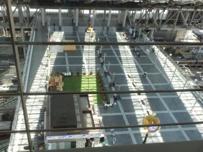 JR大阪駅ホーム上の六階部分にあって、サウスゲートビルとノースゲートとビルを結んでいる広大な広場、大阪駅の全ホームの上に跨っておりビルのサウスゲートビル六階、ノースゲートビルの五階の高さに相当するここ時空の広場と呼んでいます、駅の真上だがここまで上がってくる人はわずかで閑散としていた、コロナ前でも閑散としていた、ここから大阪駅の各ホームが見下ろせますのでのんびり電車の発着状態を眺めてきましたここは待ち合わせ場所として利用されています、添付写真はノースゲートビル10階から写す